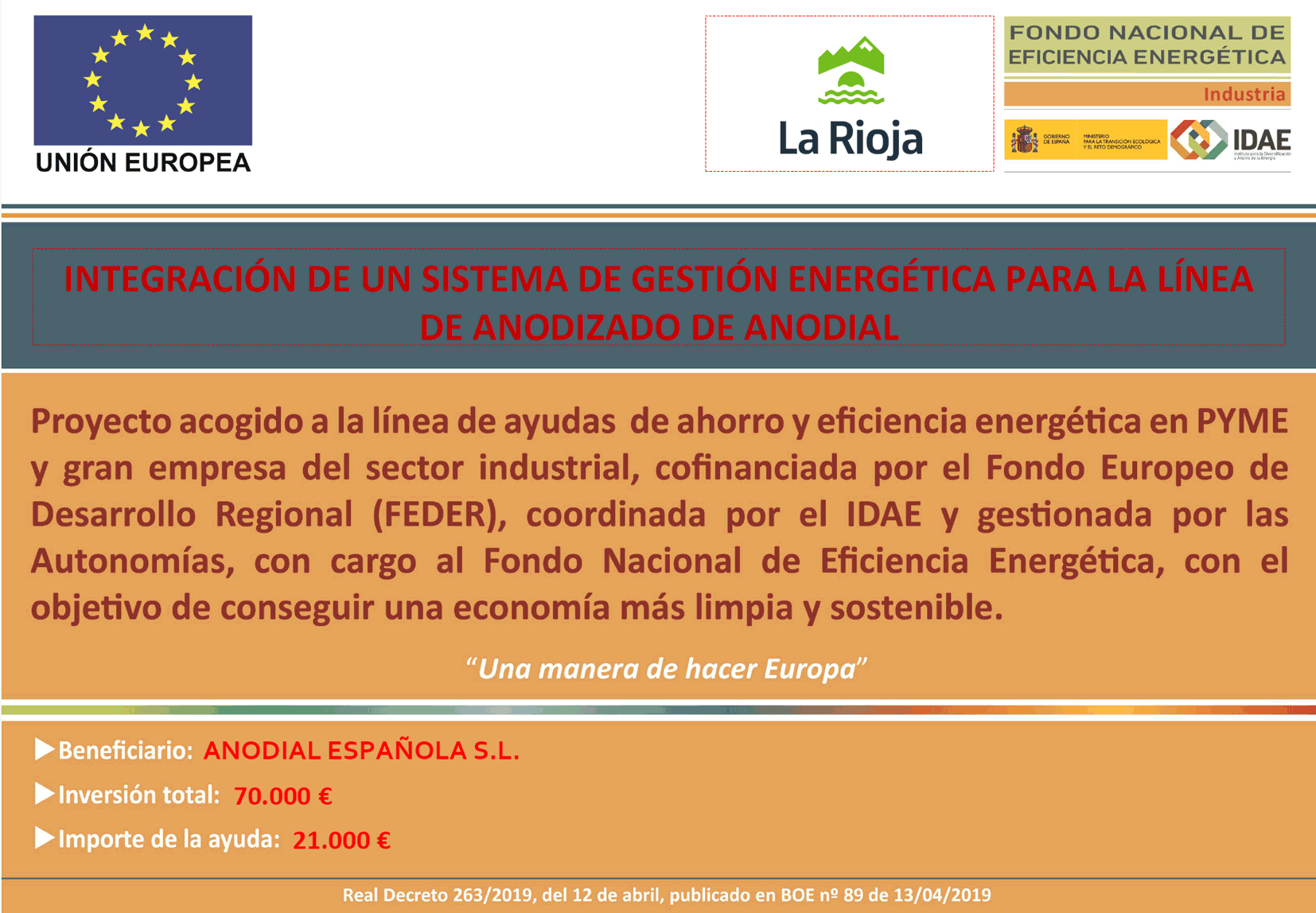 Beneficiario: ANODIAL ESPAÑOLA S.L